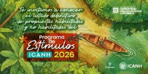 Listado definitivo de propuestas habilitadas y no habilitadas – Programa de Estímulos 2026 El Instituto Colombiano de Antropología e Historia recibió más de 500 proyectos en el marco del Programa de Estímulos ICANH 2026. Tras la etapa de verificación de documentos, en la que se revisaron los requisitos generales, el perfil de las y los participantes y las condiciones específicas de cada convocatoria, el 11 de marzo se publicó el listado de propuestas habilitadas, no habilitadas y por subsanar. Luego
