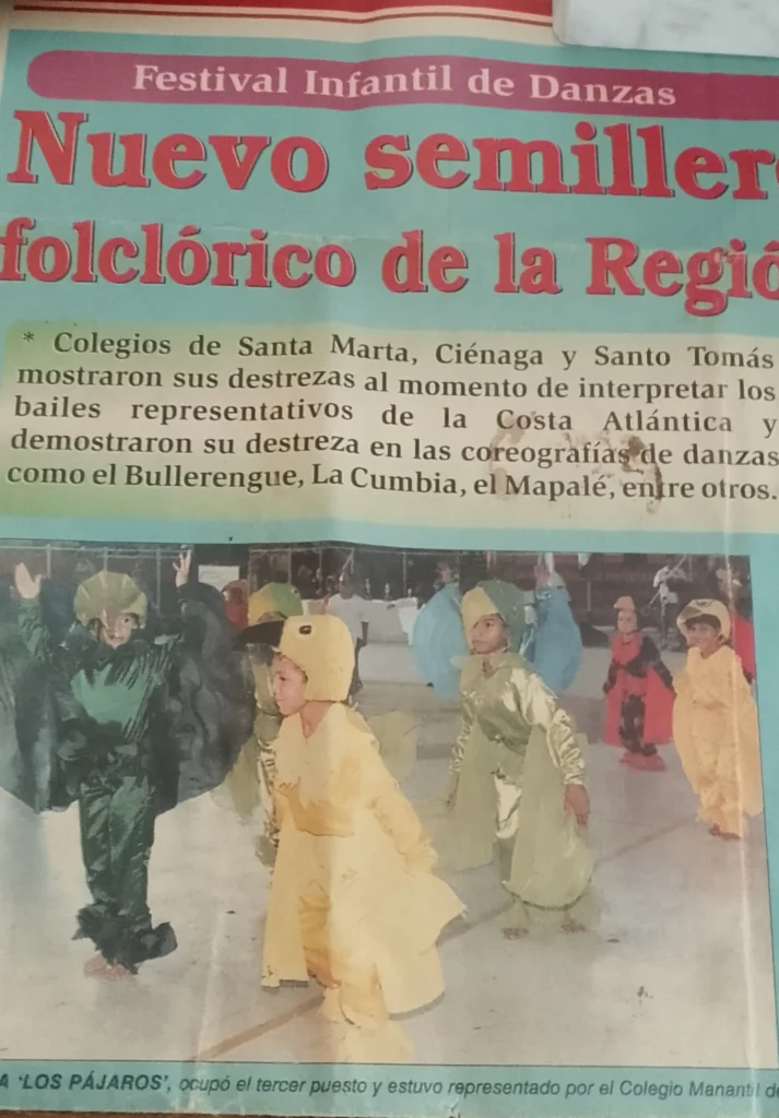 Festival Infantil de Danzas. En este encuentro participó mi nieto Jarod Joseph Correa Chávez con el colegio Manantial de Ternura (Gaira). Él bailó ‘La Danza de los Pájaros’ y ocupó el tercer puesto con el colegio. Fue un momento de mucha felicidad por tan enorme esfuerzo de estudiantes como profesores y familiares.