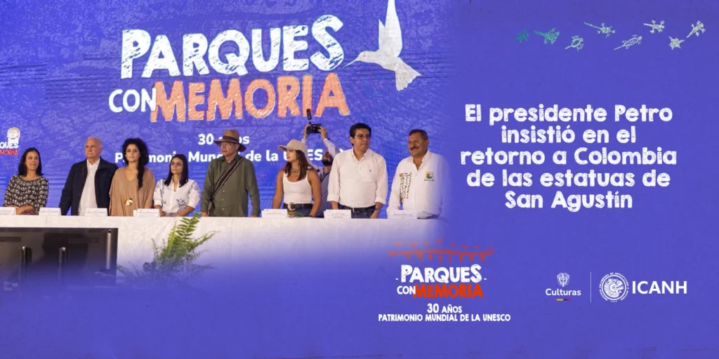 Durante el evento, el presidente de la República de Colombia, Gustavo Petro, manifestó el interés de su gobierno en insistir en los mecanismos diplomáticos para que 21 estatuas de San Agustín, llevadas a Alemania en 1923 por el etnólogo Konrad Theodor Preuss, regresen a nuestro país. “El Parque Arqueológico de San Agustín ha visto a las poblaciones que hicieron las estatuas de piedra y ha visto pasar la historia de los seres humanos en este territorio. Esos ancestros están en su obra y en nuestra sangre y esa obra, que está fuera de Colombia, tiene que ser recuperada”.